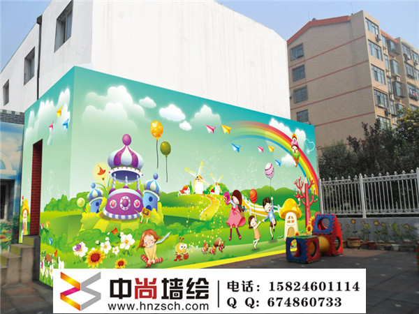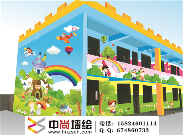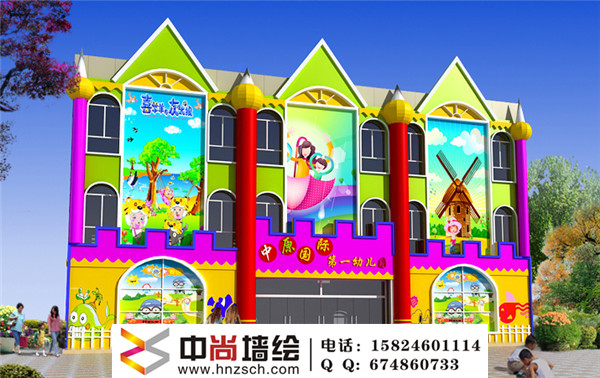 幼儿园外墙彩绘、幼儿园室外墙绘案例